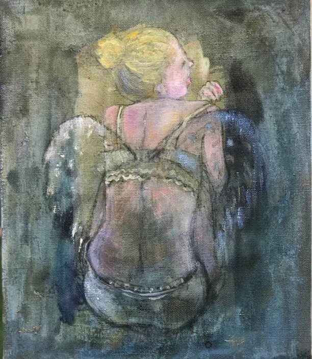 Andílek - tekutý akryl,25 x 30,, 2018_ 10000,- CZK,zarámováno